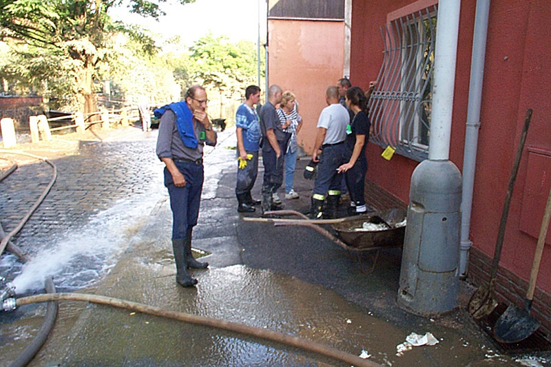 V roce 2002 jsme se podle zpráv připravovali na 50letou vodu. Pak jsme skoro dva dny kulminovali a kulminovali. Ulicí projížděla velká hasičská loď a hlídala nám náš majetek. Nikdo nesměl domů. Nevadilo to. Máme přece vše bezpečně zvednuté 1 m nad 100letou vodu. Teprve když jsme se dokulminovali k vodě stoleté, začalo být zřejmé, že jsme místo pytlování měli raději stěhovat. Pramice, místo hlídkování, měla z domů odvážet alespoň základní věci a cennosti. Povodeň byla 500letá. V domě více jak 5 metrů vody. Utopili jsme úplně všechno. Jen aby nebyla panika, nechali nás naši političtí leadři utopit jako králíky. Po povodni jsme od MČ P6 dostali košťata a dobrou vodu. My však potřebovali energocentrály, vysoušeče, wapky a hlavně lidské ruce. Ty přišly a pomáhaly a pomáhaly. Jen díky tomu jsme dokázali spoustu věcí umýt, usušit a zachránit.