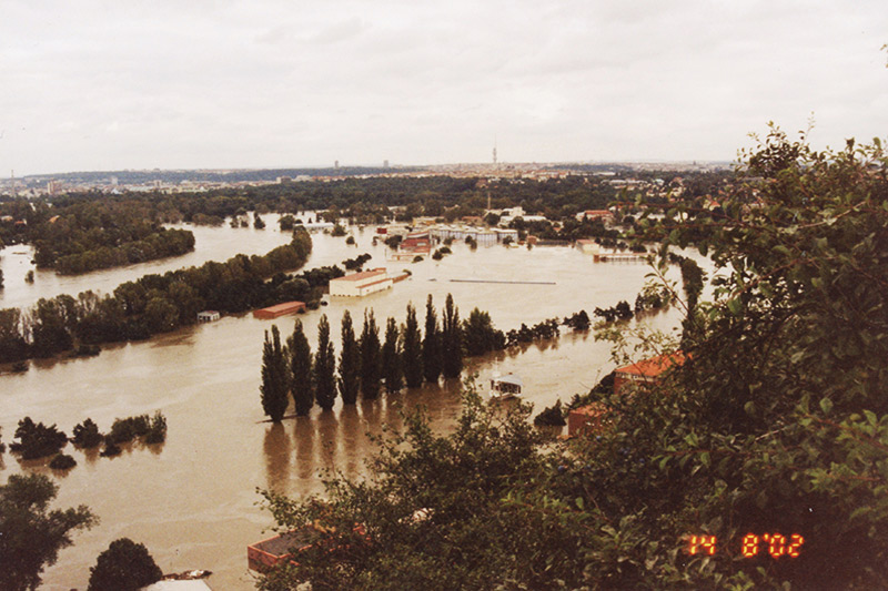V srpnu 2002 začaly stoupat hladiny řek na jihu a západě Čech. Náš dům byl nově zrekonstruovaný a měli jsme se stěhovat v září. Sledovali jsme zpravodajství a informacím od Magistrátu hl. města Prahy jsme bezmezně věřili. Přece nikdo nenechá zaplavit Prahu. Po již několikáté ohlášené kulminaci Vltavy v Praze byli lidé z naší ulice náhle evakuováni. Vltava stoupla během pár hodin o několik metrů a celá ulice V Podbabě byla zcela zaplavena. Měli jsme v našem domě 5,5 metru vody (v přízemí i v prvním patře). Průtok Vltavy byl cca. 5500 m³. Jediné štěstí v této situaci bylo, že jsme měli platnou pojistku (jako jedni z mála v ulici) a v domě jsme ještě neměli žádný nábytek, osobní věci ani potraviny. Sledovat beznaděj v očích místních starousedlíků bylo frustrující. Začalo vysoušení, osekávání omítky a následně odstartovala rekonstrukce číslo dva. Brzy následovala výpověď z pojišťovny. Novou pojistku v této zóně nabídla jediná pojišťovna, cena byla 40 000 Kč ročně. Tuto pojistku jsme platili několik let – bez ní tady bydlet nelze.
