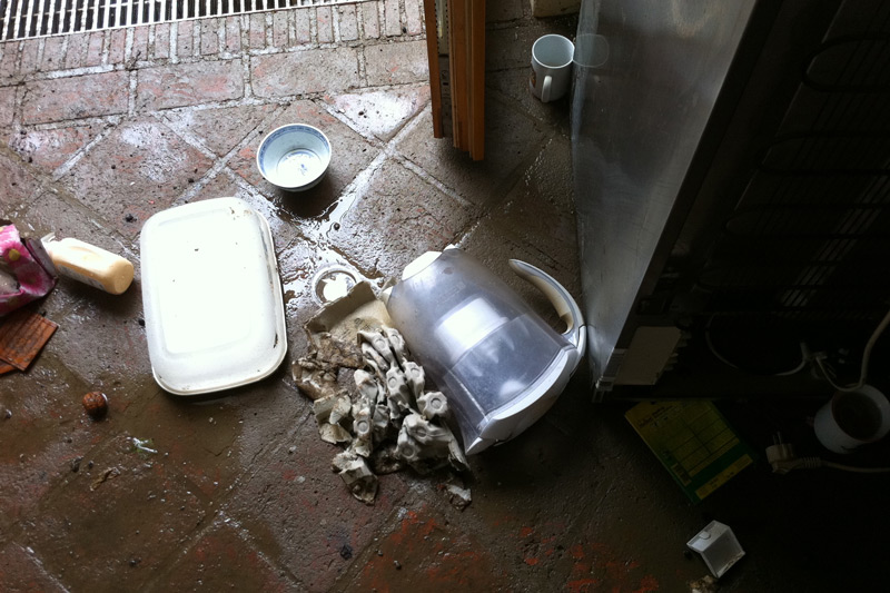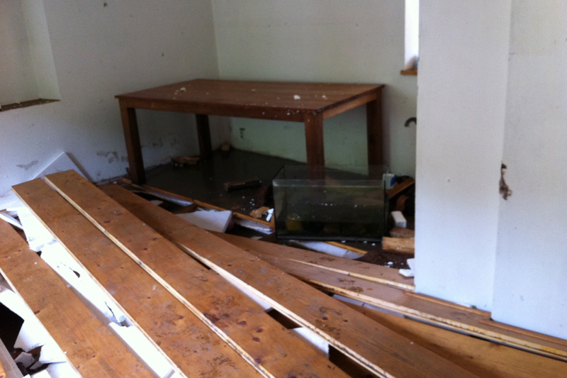 Když voda opadla, čekal nás již známý smutný pohled na zničený, zabahněný a páchnoucí dům, spousta práce a obav. Voda tentokrát sahala do 1,75 cm. Obrovské hora vzdutých parket, rozpadlý nábytek, který jsme nemohli už přesunout pater, zatopený sklep. Mrtvolky rybiček z akvária jsme nacházeli po celém přízemí.