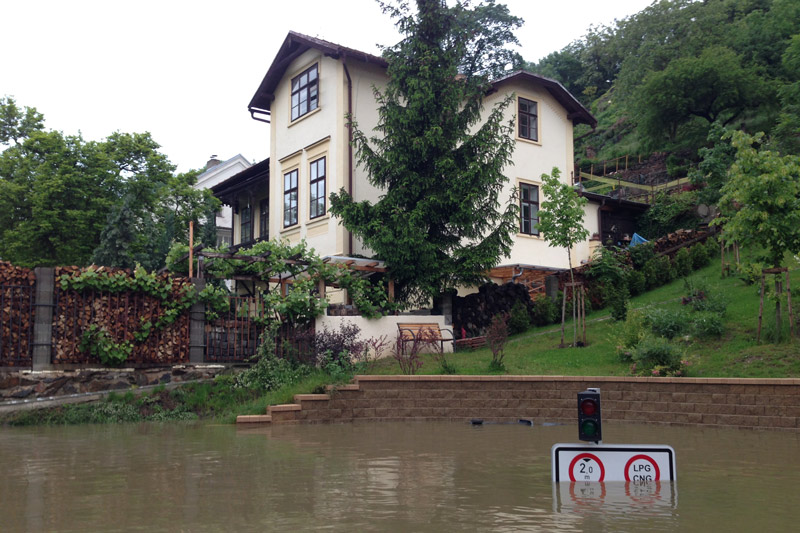 Dva roky oprav a život rodiny v provizoriu. Jednání s úřady o ochraně a slib “nikdy více.” Vše porušeno už v roce 2013. Přízemí domu už není raději na bydlení, zřídili jsme tam ateliér – místo k podnikání. Archiv, tiskárny a počítače. Teď vše na 1/2 roku odstěhované do garáže. Znovu voda. 1,3m v přízemí. A znovu bláto, mokro, špína, prach. Znovu opravy, ale hlavně ztráta místa podnikání otřásla finanční situací celé rodiny. MČ poskytla vysoušeče a pomáhala daleko účinněji. Po nahlášení pojistné události přichází výpověď smlouvy. Nikdo nás nechtěl pojistit. Nakonec se podařilo. Cena je však vysoká, ale není alternativa. Platíme nehorázné částky za pojistku jen proto, že zde nemáme protipovodňovou ochranu.